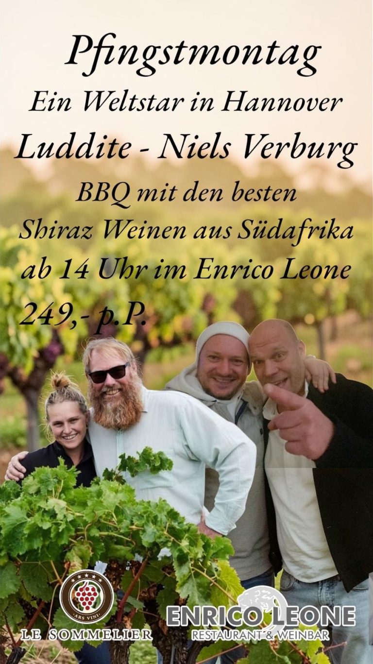 Pfingstmontag, 25.05.2026 begrüßen wir NIELS VERBURG vom Weingut LUDDITE bei uns im Enrico Leone.